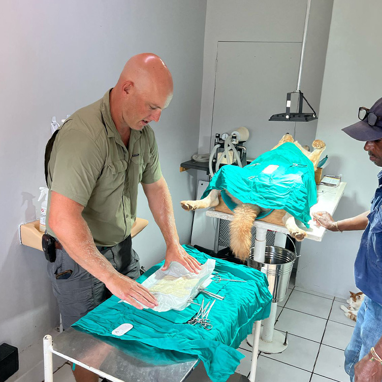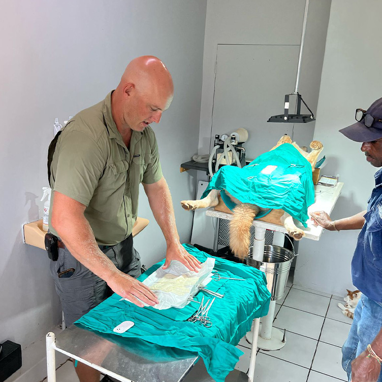 preparation and delivery of food to cheetah, lions, meerkats and other animals, participating in physical exams and medical procedures, maintenance of the rehabilitation center and the enclosures, training cheetahs to hunt, implementing enrichment activities, interacting with the local community, experiencing game drives on the sanctuary, and attending lectures about conservation, anatomy and physiology, wildlife crime, and ecology