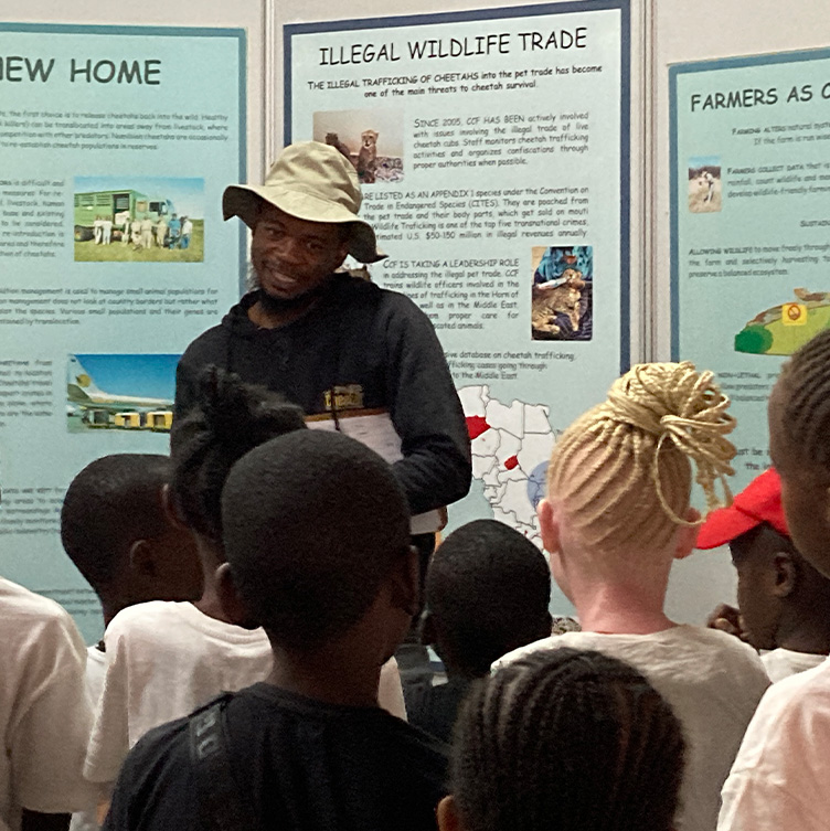 preparation and delivery of food to cheetah, lions, meerkats and other animals, participating in physical exams and medical procedures, maintenance of the rehabilitation center and the enclosures, training cheetahs to hunt, implementing enrichment activities, interacting with the local community, experiencing game drives on the sanctuary, and attending lectures about conservation, anatomy and physiology, wildlife crime, and ecology